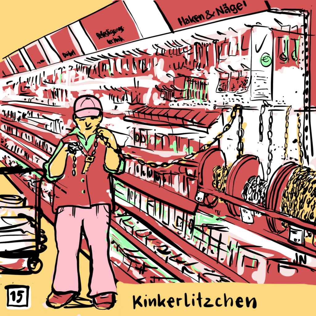 ✴ Fast hört man es beim Sprechen klappern und klirren: Das Wort „Kinkerlitzchen“ geht auf das französische „quincaille(rie)“ für Kurzwaren oder Eisenwaren- und Werkzeughandel zurück und kam wie viele französische Worte mit den Hugenott:innen im 18. Jahrhundert nach Deutschland.